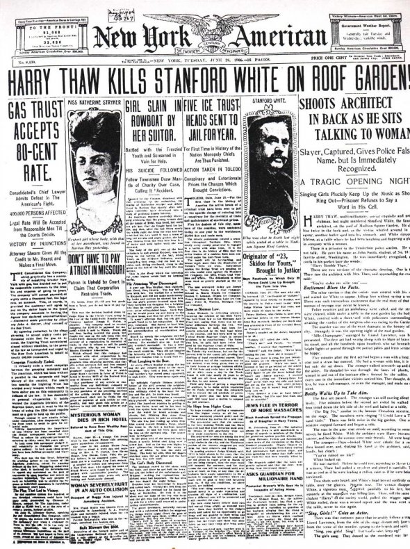 El desenlace de esta historia tuvo lugar irónicamente en uno de los edificios más famosos construídos por Stanford White: el Madison Square Garden. Una noche de 1906, Thaw y unos amigos acudieron a un espectáculo que tenía lugar en la azotea del edificio y éste descubrió a White entre el público. En mitad del show, Thaw se acercó a White y lo abatió a tiros. Se convirtió en uno de los mayores escándalos de la época, con la prensa siguiendo el caso de cerca y haciendo gala del peor amarillismo.