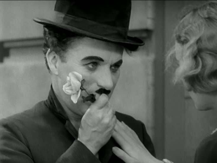 El encuentro entre una vendedora de flores ciega y un hombre sin empleo, se transforma en una escena -a blanco y negro y sin palabras- que permite percibir la realidad de una época que aún compartimos: limitadas oportunidades laborales; depresión y alcoholismo a pesar de poseer poder y dinero; y los sacrificios que hace un hombre enamorado, con tal de ver a su amada feliz.
