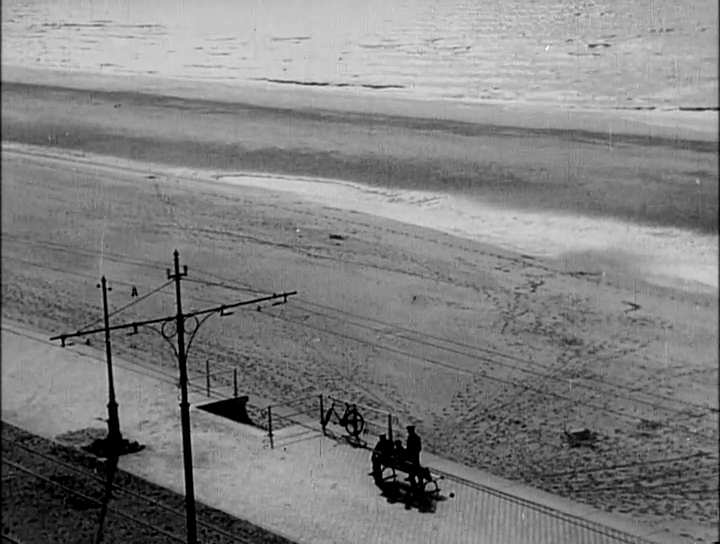 Este cortometraje del belga Henri Storck en realidad pertenecería más a un hipotético género de «sinfonías de playas», pero la he citado precisamente porque supone una variación respecto a las otras películas. Ostende es una localidad belga famosa por su playa, y por ello Storck se dedica sobre todo a captar con su cámara el mar y todos los hipnóticos juegos visuales que ofrecen las olas y la arena, emparentándolo en cierta forma con un maravilloso corto de cine absoluto que también toma como referencia el agua: Regen (1929) de Joris Ivens.