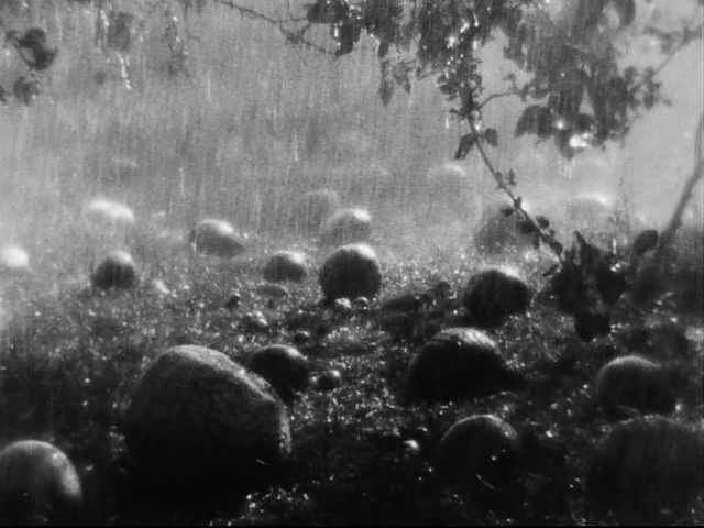 10) El desenlace, que conecta con el prólogo en dar esa visión del ser humano conectado con el ciclo de la vida. Pese al dramatismo de lo que acabamos de presenciar, la película acaba con planos de una preciosa lluvia que baña los árboles de fruta. La vida sigue su curso. Hemos asistido a las peleas entre seres humanos pero al final no somos más que parte de este mundo que Dovzhenko ha retratado con tanta belleza.