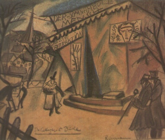 La génesis de dicho guión vino condicionada según Janowitz por una serie de sucesos que había vivido, de los cuales el más llamativo fue una visita en 1913 a un parque de atracciones en Hamburgo, donde vio a una mujer de la que se quedó prendado. La siguió pero la perdió de vista cuando se metió por unos arbustos, de los cuales luego salió un hombre. Al día siguiente leyó en la prensa que la muchacha había sido asesinada en la feria y el hecho le chocó profundamente. Combinando esa experiencia con el clima enrarecido que se vivía en Alemania en los años de posguerra, crearon una historia extraña y sórdida que implicaba un espectáculo de variedades y misteriosos asesinatos.