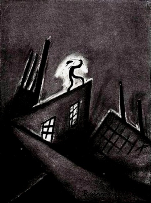 Pero volviendo al mito de Caligari como fracaso cinematográfico, éste se sustenta en creer que el gran público difícilmente podría estar preparado para asimilar una obra con un estilo tan singular y artístico como ésta, pero realmente no era así. En aquellos años, las diferencias entre cine comercial y cine de vanguardia no eran tan radicales como lo sería tiempo después, de modo que un experimento artístico como éste podía venderse perfectamente como una película comercial. Y por otro lado, en 1920 el arte expresionista ya había sido más que asimilado por el gran público y era casi un estilo artístico de moda. Para entonces ya se habían estrenado numerosas obras teatrales que sirvieron como referente artístico a Caligari, y que mencionaremos en otro post de esta serie, de modo que el público estaba realmente preparado para algo así. Por tanto, pese a lo audaz y rompedora que era la propuesta, no resultaba en absoluto un salto al vacío.