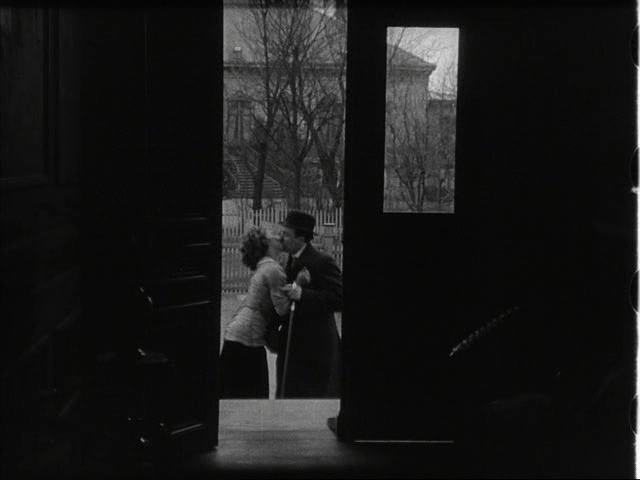 Este otro puede parecer menos llamativo, pero a mí me parece muy interesante por la composición, mostrándonos en primer plano un trozo de puerta que nos indica que el personaje está en el reservado de un bar. El detalle de la puerta es totalmente prescindible, y si Blom lo añadió era con toda la intención del mundo. Lo que consigue con él es romper con la homogeneidad del resto del film basado en planos generales frontales. Con esta composición, hace que nos sintamos dentro de la escena, y no que la estemos visualizando desde fuera como el resto de secuencias. Este tipo de detalles, tan sutiles pero llenos de intención, demuestran que Blom tenía ya cierta idea de hacia donde se dirigía el lenguaje cinematográfico.