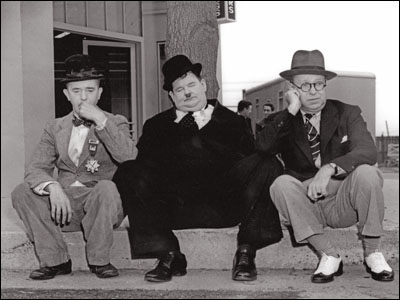 Después de una breve experiencia con Hal Roach y un costoso divorcio, Langdon se declaró en bancarrota en 1931. El resto de su carrera se la pasó trabajando en cortometrajes baratos para estudios pequeños o como escritor de gags para otros cómicos como Laurel y Hardy (con quienes aparece en la fotografía de abajo). Nunca consiguió recuperar su estabilidad financiera, ya que cada vez que recibía algo de dinero aparecía de la nada su segunda esposa dispuesta a desplumarle. Cuando murió en 1944 era una figura totalmente caída en el olvido.