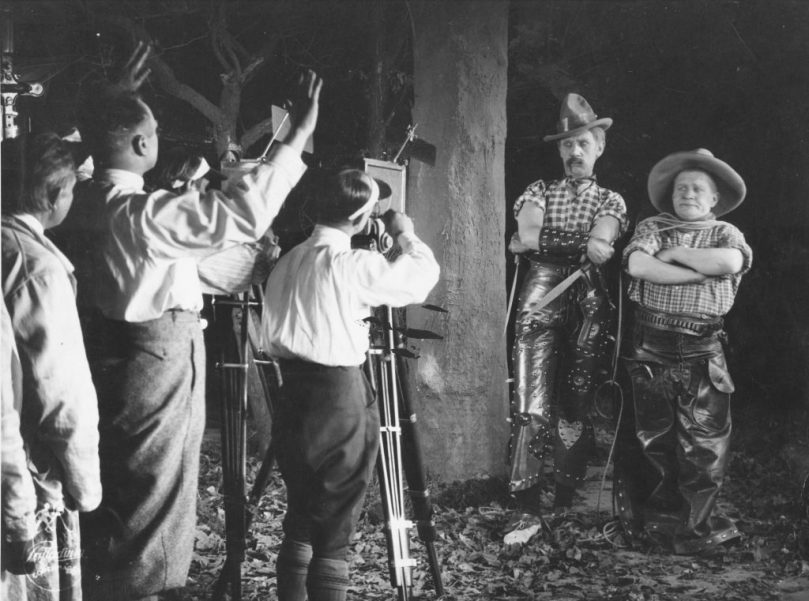 Hoy Dinamarca y Alemania se han adueñado del ciclo de slapstick europeo ofreciéndonos algunos ejemplos de cómicos de sus países. En el caso de Dinamarca han sido el dúo cómico Pat & Patachon, cuya popularidad fue enorme no solo en su tierra natal sino también en otros países como Alemania, Holanda, Bélgica y Francia (de hecho llegaron a filmar películas en Reino Unido y sobrevivieron a la prueba del sonido manteniendo su popularidad en Alemania y Austria). Como aperitivo vimos algunos fragmentos de noticiarios que atestiguan la inmensa popularidad del dúo y un corto realizado por su director habitual, Lau Lauritzen, con otros actores: My Sister-in-law from America (Min Svigerinde fra Amerika, 1917), en que una mujer pilla in fraganti a su marido con su amante y para salir del paso le dice que es la mujer de su hermano, que viene de visita de Estados Unidos. Para complicar las cosas, su hermano y su cuñada reales están a punto de llegar a casa (un dato demencial: el hermano va vestido como el Tío Sam, supongo que porque se siente muy americano).