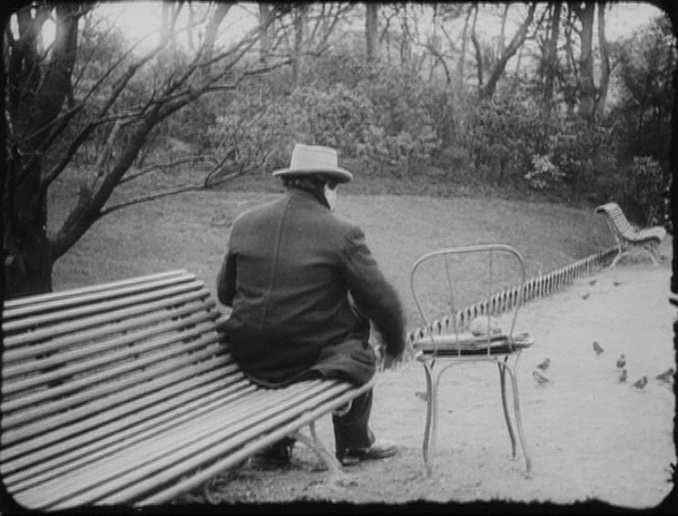 Le Pain des Petit Oiseaux (1911) no es una de las películas más destacables de Capellani pero tiene suficientes detalles remarcables que merecen que le dediquemos una entrada. En primer lugar el entrañable personaje del anciano, que en la escena inicial se nos revela como un excéntrico que se pasea por diversas mesas del restaurante donde ha comido para recoger los mendrugos de pan que sobran y así dárselos a los pájaros. Relacionado con eso, fíjense en este curioso y extrañísimo contraplano de la escena en que alimenta a las palomas. Resulta chocante en un filme que, como todas las obras de la época, se basa en la frontalidad y no suele ofrecer planos diferentes de una misma escena. El motivo seguramente esté en esa famosa frase de Hitchcock sobre lo difícil que era rodar con niños, animales y Charles Laughton. Si se fijan, en el primer plano no se ven los pájaros a los que da de comer, pero en el contraplano sí aparecen. Quizá resultaba difícil conseguir que las aves salieran en el primer plano dentro del encuadre (recordemos que la cámara por entonces apenas se movía).