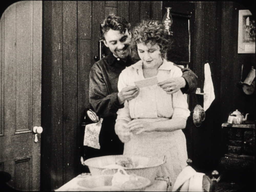Como aperitivo a este filme tan peculiar se nos ofreció previamente una pequeña sorpresa: un capítulo inédito del serial Who’s Guilty? (1916), que seguramente le resulte familiar a los lectores más veteranos, ya que fue uno de los ciclos principales de la edición 2016 del festival. Para los que no lo conozcan, éste era un serial en que cada capítulo explicaba una historia independiente con los mismos actores, y cuyo gancho es que al final se planteaba al espectador la pregunta retórica sobre quién de los personajes era el verdadero culpable de la tragedia que había sucedido. En su momento vimos los 10 episodios que se conservaban de los 14 que formaba el serial, pero recientemente se encontró el episodio 5 en Rusia, que es el que se proyectó hoy. La historia es un triángulo amoroso en que una chica de familia adinerada rechaza a un prometedor ingeniero para casarse con un hombre humilde que está convencido de que encontrará oro en una mina. La familia de ella le intenta convencer de que no escogió bien, mientras en paralelo el pretendiente rechazado se interesa por si la mina tiene oro de verdad. Como imaginarán, nada de esto podrá acabar bien…
