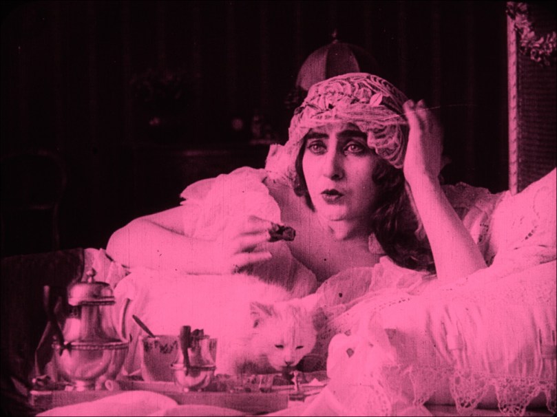 El otro corto fue un ejemplo más de Nasty Women, Le Ménage Dranem (1912), que se basa en ese idea explotada en otras comedias de la época de subvertir los roles de género: en este caso la mujer le echa la bronca al marido para que haga las tareas domésticas mientras ella se va con sus amigas a beber cerveza, fumar y jugar a billar o cartas. Es un corto bastante divertido pero al que le reprocho ese final tan conservador y, lo que es peor, poco ocurrente, en que el marido se rebela y vuelve a tomar las riendas del hogar. Fue bonito mientras duró.