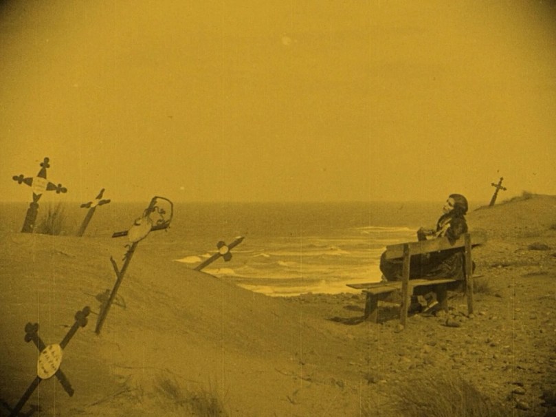 Hay muchos más aspectos y detalles que podríamos extraer del filme, pero que harían esta entrada interminablemente larga. Simplemente por no alargarme más destacaría dos planos que reflejan a la perfección esa conjunción tan bien conseguida por parte de Murnau de unir lo inquietante o terrorífico con lo bello. Por un lado el plano de Ellen esperando melancólicamente la llegada de Hutter en la playa rodeada de las cruces de un cementerio (¿existe una mejor representación visual de qué es el romanticismo que esta instantánea?). Y por el otro el famosísimo plano en que Nosferatu sucumbre a causa de la luz solar y se desvanece, un instante que me sigue poniendo los pelos de punta cada vez que revisiono esta obra cumbre del cine.