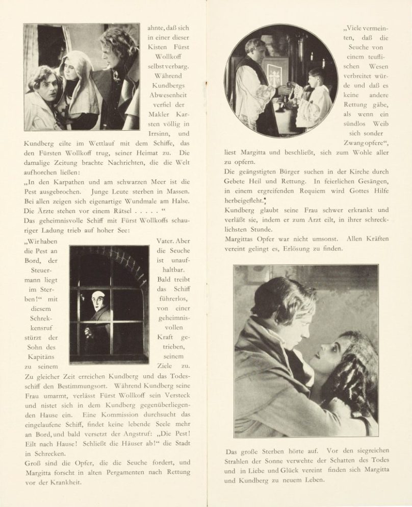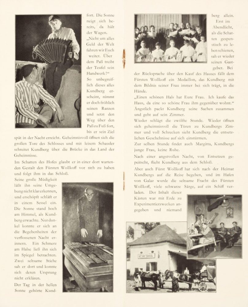 Otro fragmento del programa de mano de Die zwölfte Stunde con fotogramas de algunas de la escenas adicionales. Nótese cómo el plano de Nosferatu en la ventana no es el de la película de Murnau. De hecho ni siquiera el actor es Max Schreck y el maquillaje es diferente. Probablemente fue una instantánea que los productores de Die zwölfte Stunde tomaron con fines publicitarios usando a otro actor. Imágenes cortesía de Brent Reid.