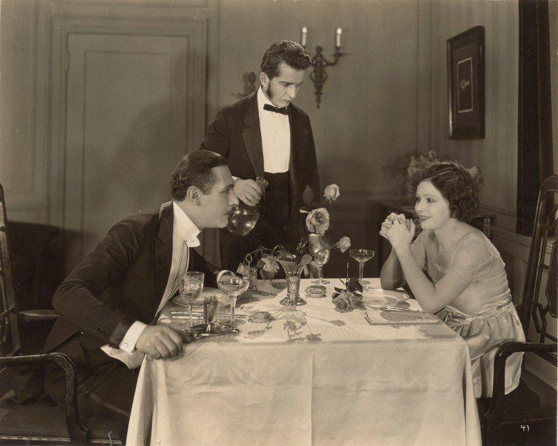 En su primera mitad, Up in Mabel’s Room me parecía una comedia simpática pero a ratos algo tontorrona, con demasiados gags basados en rótulos graciosos más que en la acción y con algunos secundarios poniendo caras bobaliconas para hacer reír de forma fácil. Pero en la segunda mitad, cuando la acción se traslada a una mansión, el filme repunta y se vuelve divertidísimo hasta el final. Prevost tiene muy buena química con su rival masculino, interpretado por Harrison Ford (no ese Harrison Ford, sino el actor mudo de mismo nombre), con una dinámica muy en la línea de La Fiera de mi Niña (Bringing Up Baby, 1938) o Su Juego Favorito (Man’s Favorite Sport?, 1964) de Howard Hawks en que el personaje fuerte es la mujer, quien mete siempre en líos al hombre. Por otro lado también merece destacarse que contiene algunos gags un tanto picantes que son puro pre-Code y algunas ideas muy ingeniosas relacionadas con la premisa de la pieza de lencería. Por ejemplo, cuando el mayordomo del protagonista pregunta qué pieza de ropa están buscando, el personaje interpretado por Ford la describe en gestos, y al final el mayordomo se desata y describe por su parte la pieza de lencería a la que cree que se refiere con todo lujo de detalles mímicos, hasta incomodar a su propio amo. Es un tipo de humor solo posible en la era muda y que funciona muy bien en este contexto donde lo importante son los sobreentendidos.