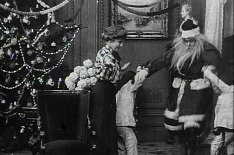 Ahora que se acercan las Navidades es un buen momento para rescatar este entrañable cortometraje de D.W. Griffith, A Trap for Santa Claus (1909). La historia, de tintes marcadamente melodramáticos, tiene como protagonista a una familia caída en desgracia: el padre, que lleva tiempo sin trabajo, ha sucumbido al alcoholismo, y su mujer y sus dos hijos pequeños subsisten como pueden soportando sus arranques de furia. Un día, el hombre decide dejar el hogar porque cree que su presencia les hará más mal que bien, y la pobre madre queda abandonada a su suerte. Pero por suerte les llega la noticia de una cuantiosa herencia inesperada gracias a la cual pueden vivir cómodamente en una gran casa.