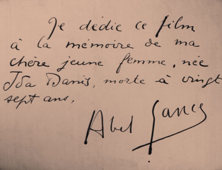 • Sí, es una apreciación curiosísima porque Gance precisamente lo que hizo fue buscar un lenguaje propio para el cine que le diera personalidad al margen de otras formas de arte. Entiendo que él se refiere sobre todo a los rótulos, que es cierto que a veces son muy pomposos, pero vamos, para mí eso es lo de menos.