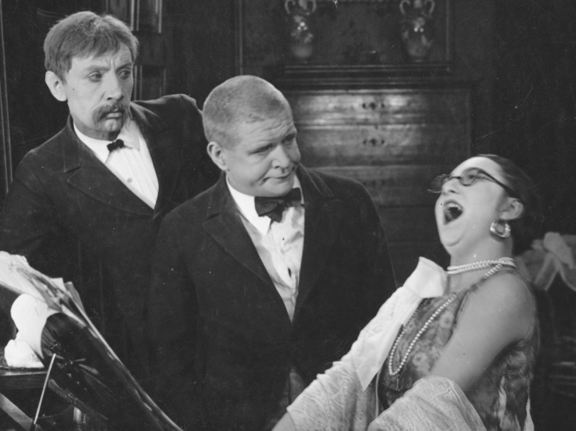 Pasando a Alemania, Wir Halten Fest und Treu Zusammen (1929) de Herbert Nossen con el dúo cómico Siegfried Arno y Kurt Gerron me tiene fascinado por un curioso motivo, y es que podría ser el corto cómico menos humorístico que he visto nunca. No es que los gags fallen, es que la mayoría de veces ni siquiera parece que lo intenten. El tono es casi desabrido, los personajes se mueven lentamente, no hay ritmo. Es algo muy extraño, y quizá no ayude el hecho de que solo se conserve un fragmento, pero lo que vi me hizo comprender por qué este dúo humorístico no tuvo mucho éxito. Por último, vimos otro cortometraje de Karl Valentin no especialmente remarcable en que parecía más bien que se dedicó a improvisar gags en el Oktoberfest con una actriz que hacía pareja con él. Muy en la línea de cortos de la Keystone improvisados en sitios públicos, como el que comentamos en el artículo anterior.