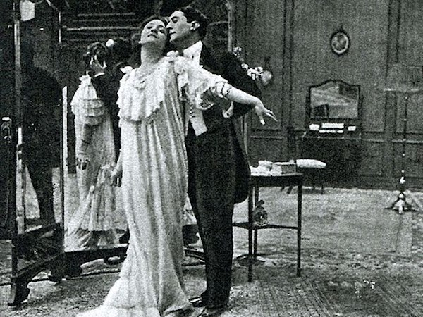 Si hasta ahora nuestras jornadas en Pordenone empezaban con el serial algo plácido de Le P’etit Parigot, el último día en cambio se nos propuso un plato fuerte: toda una tragedia y una película clave en el devenir del cine italiano, Ma l’Amor Mio non Muore! (1913) de Mario Camerini. Ya su título (con símbolo de exclamación incluido) es una declaración de intenciones. Pero es que nos encontramos ante el debut cinematográfico de una de las grandes divas del cine de esos años, Lyda Borelli, en una historia que parece hecha a su medida: Elsa es la hija de un general que es seducida por un espía, quien aprovecha para penetrar en su casa y robar unos importantes documentos, provocando la caída en desgracia y el suicidio de su padre. Elsa empieza una nueva vida como exitosa actriz y cantante y conoce a un príncipe con el que inicia un romance, pero no acabará bien.