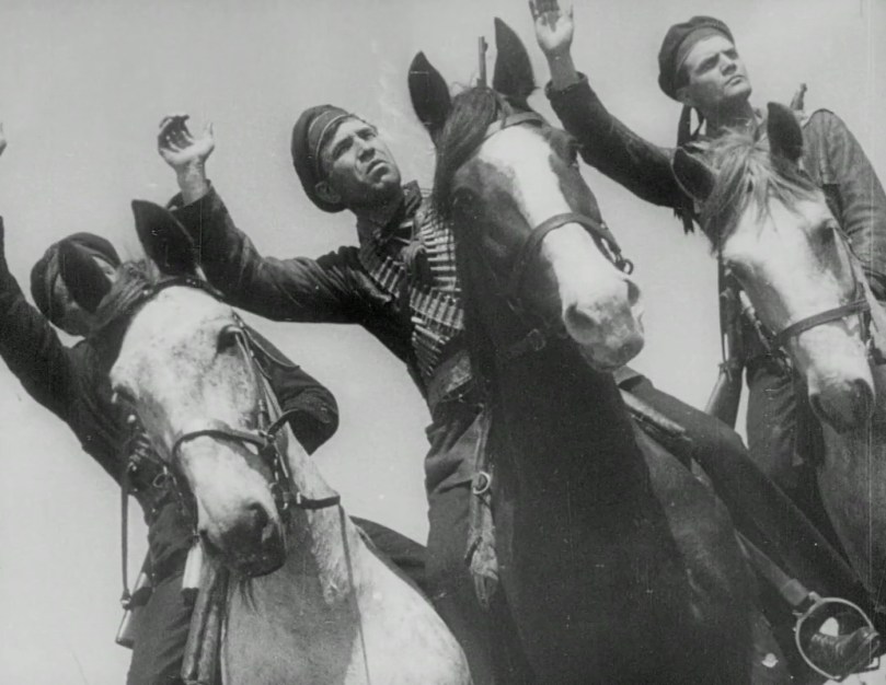 Pero la impresión que da Dovzhenko es que va navegando por diferentes escenarios que están vinculados con la insurrección obrera y que, en ocasiones, no puede evitar detenerse en algunos detalles concretos que le llaman poderosamente la atención, mientras que en otros momentos simplemente decide obviar lo que nos permitiría entender mejor todo el conjunto. Y cuando parece que ya nada puede sorprendernos entonces de repente los caballos empiezan a hablar de la Revolución y animan a los humanos y a sus compañeros a que sigan luchando por la causa.