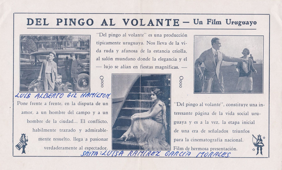 Solo se llegaron a realizar cinco películas mudas de ficción en Uruguay, de las cuales en Pordenone hoy vimos Del Pingo al Volante (1929) de Robert Kouri, producida por un colectivo de asociaciones benéficas femeninas y protagonizada, no por actores profesionales, sino por gente perteneciente a estas élites. De nuevo, eso implica darle un tono más de estar por casa que profesional al resultado final, si bien la trama tampoco requiere grandes actores: una viuda adinerada descubre que está en la ruina y decide instigar discretamente a su hija a casarse con un primo suyo, un rico ranchero.