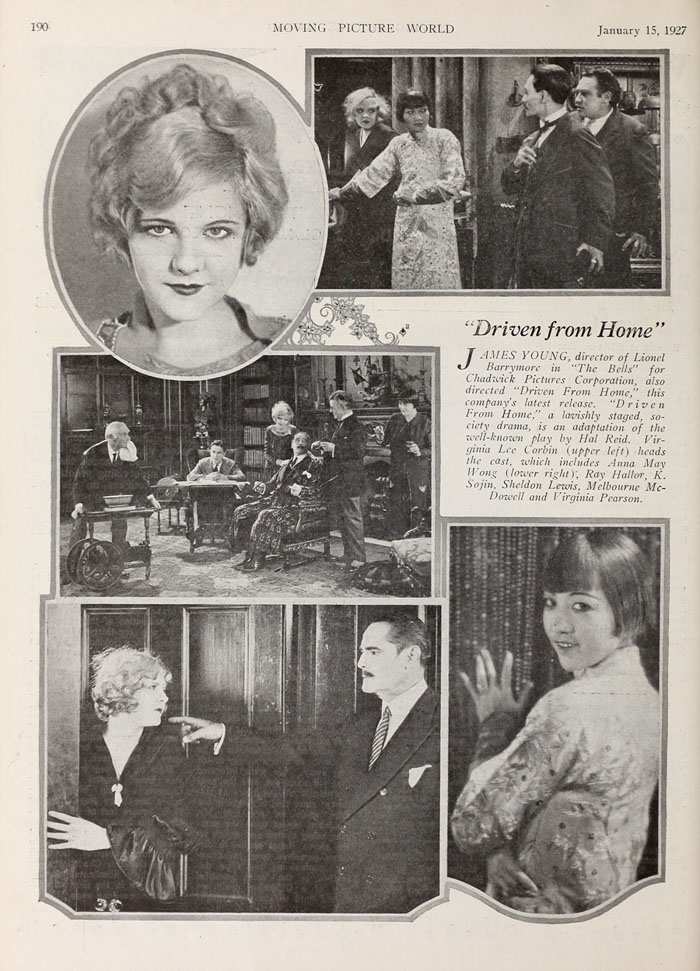 Driven from Home (1927) no se diferencia mucho del otro filme de Anna May Wong que vimos ayer. Es una de esas películas no especialmente destacables pero que, a cambio, muestran el potente nivel medio del Hollywood de la época silente, donde un pastiche melodramático del montón tenía a cambio un trabajo visual magnífico, en este caso realizado por James Young, uno de esos nombres anónimos que hacían productos muy bien acabados. La historia es predecible desde su premisa: la familia Hillary son unos nuevos ricos que no consiguen hacerse aceptar socialmente y cuyo padre insiste en casar a su hija con un conde en vez de dejarle casarse con el hombre que ama. Cuando ésta decida casarse en secreto, el padre la echará de casa. Obviamente ya sabemos a qué enseñanzas morales llevará todo esto (el dinero y la posición social no lo son todo, hay que casarse por amor y no por dinero, es mala idea comprometerse con nobles europeos arruinados…), pero eso no quita que no podamos disfrutar del viaje y celebrar cuando por fin aparece Anna May Wong en la trama, en el momento en que la pareja protagonista decide bajar a comer a un restaurante chino.