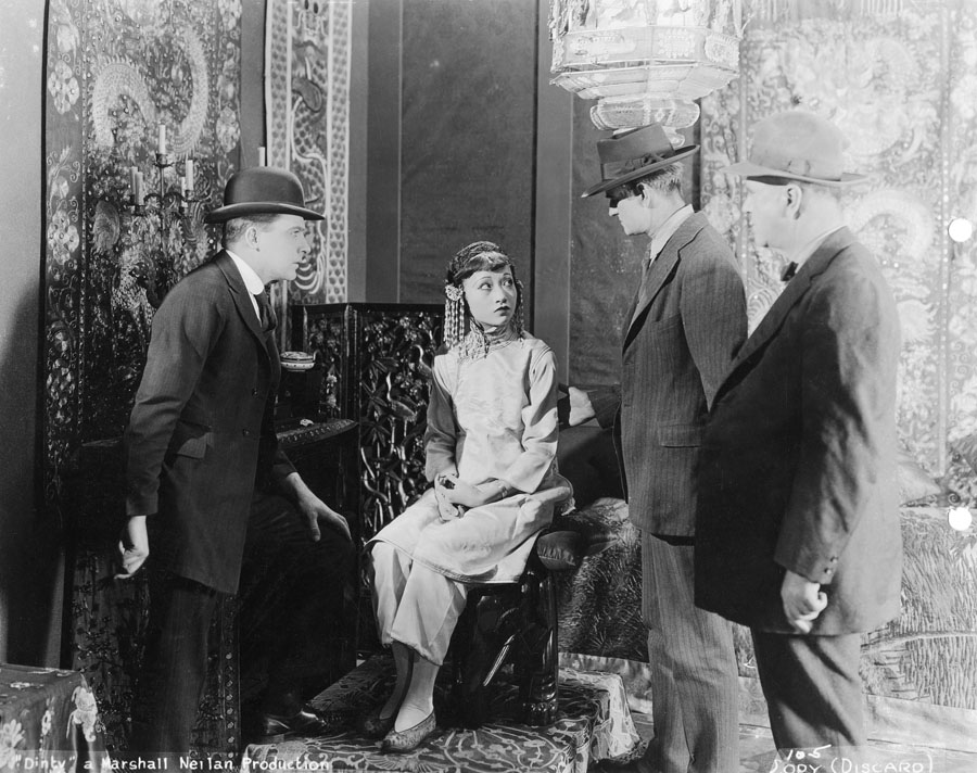 Dinty (1920) de Marshall Neilan nos sirve como «dos por uno» ya que cubre dos de los principales ciclos del festival: el de la actriz Anna May Wong y el del diseñador de producción Ben Carré. En el caso de ella, tiene un papel muy pequeño pero fue el primero que hizo que fuera mínimamente reconocible y le sirvió para empezar a afianzarse como secundaria ya acreditada en otros filmes (ojo al dato, aquí tenía solo 15 años y encarna a la amante de un mafioso chino). En lo que respecta a Ben Carré, es un ejemplo del cuidadísimo trabajo de ambientación que hacía en las películas en que colaboraba: desde los planos iniciales en Irlanda a, por supuesto, todo el barrio de Chinatown de San Francisco.
