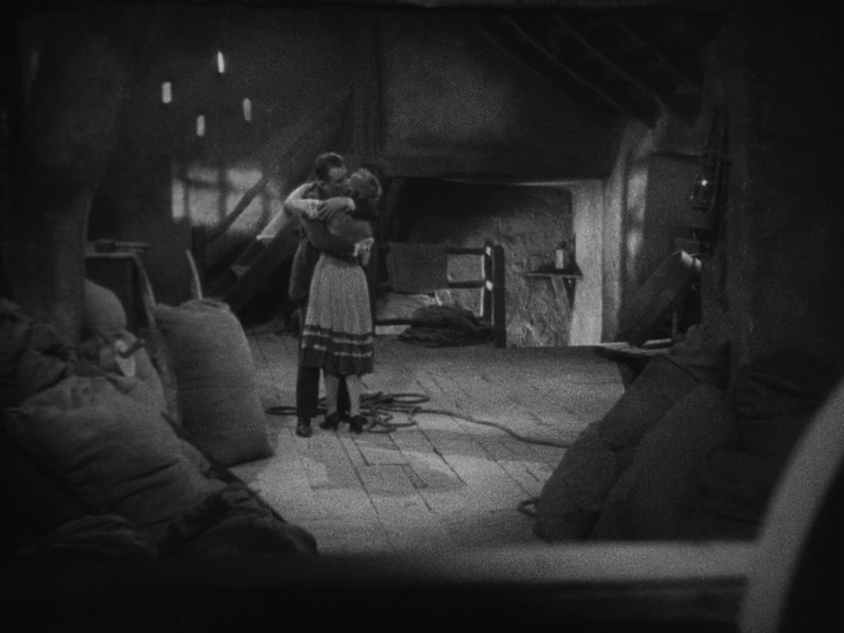 A mí de hecho una de las cosas que más me gustan de El Hombre de Man es cómo se nota que es una película de finales de la era muda, en que se dice todo lo posible con imágenes y no palabras, incluso en un filme que requiere potencialmente de muchos diálogos. En la escena en que Phil interce por Pete ante el rudo padre de Kate se nos muestra, no el diálogo, sino la conversación que tiene el abogado con el padre en otra habitación vista desde el punto de vista de Pete, a lo lejos, sin poder oír lo que están diciendo. No hace falta escuchar los detalles, ya que las expresiones y la gestualidad nos dan a entender todo, y además ese punto de vista nos contagia la inquietud del pobre Pete.